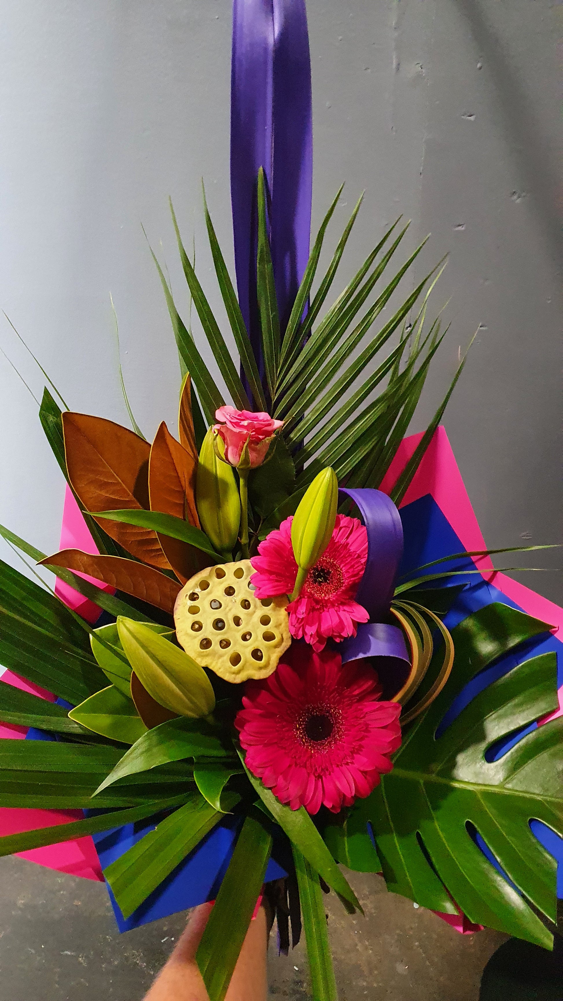 A creative arty style bouquet designed for you by our qualified floral family, this is a stunning gift fit for a run way!!